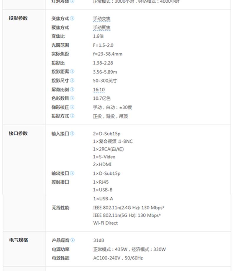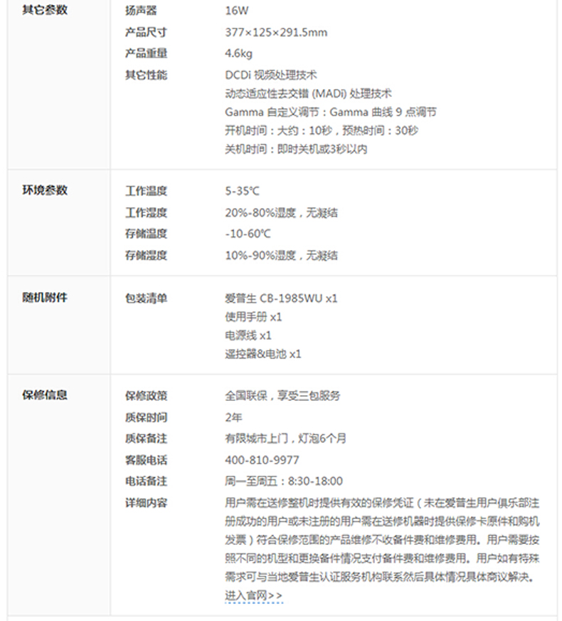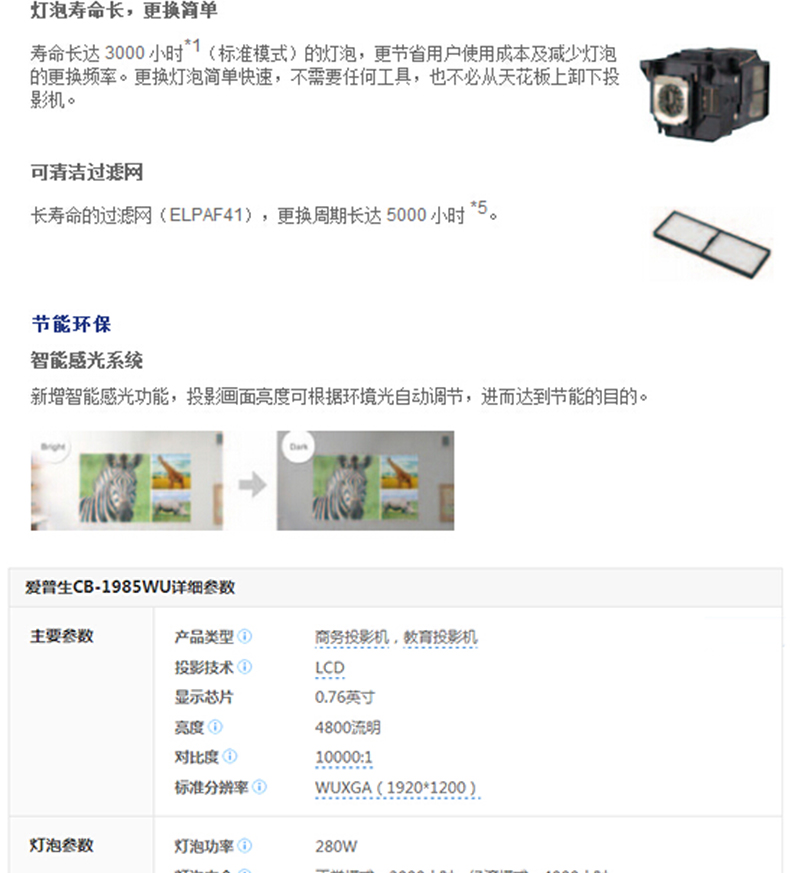 - 商品名称:爱普生(EPSON) CB-1985WU 投影仪
