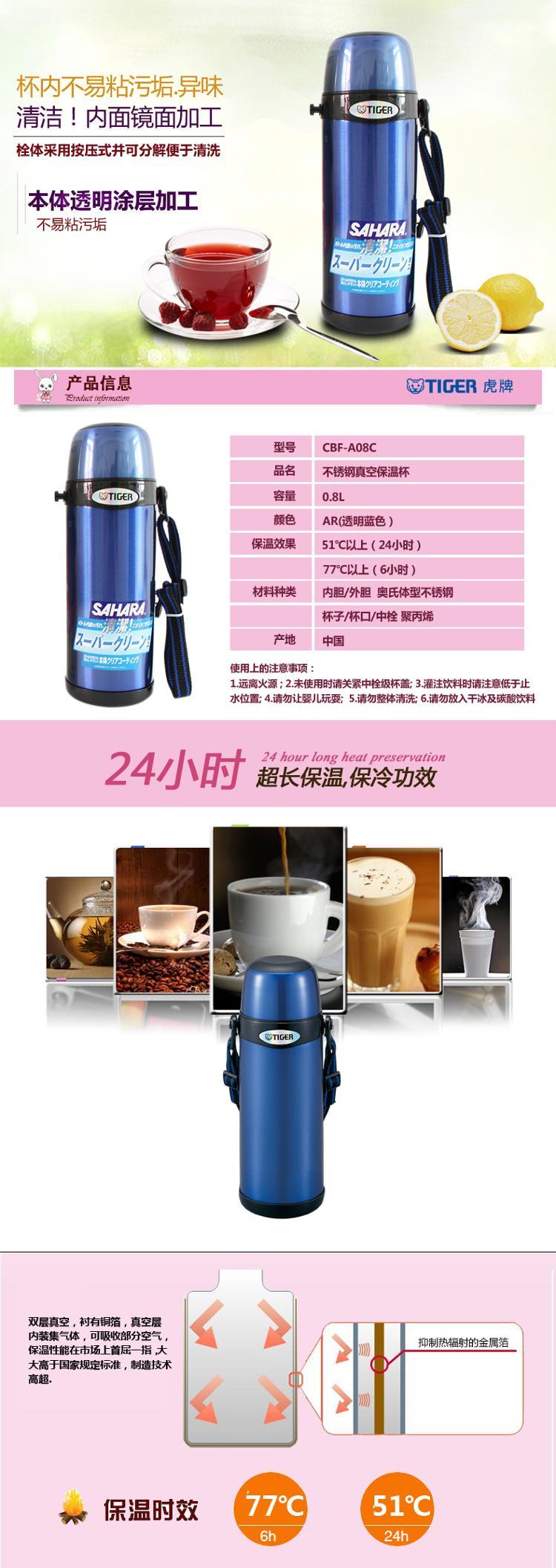 商品名称:Tiger虎牌户外运动不锈钢保温杯CBF-A08C-AR透明蓝色