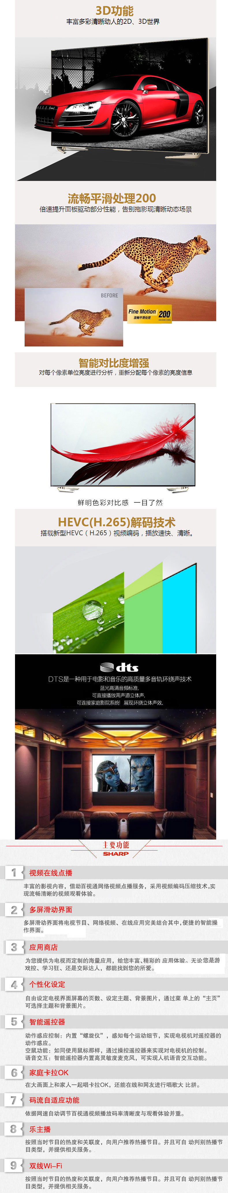 - 商品名称:夏普 LCD-60UD30A 60英寸 4K 超高清智能液晶平板电视