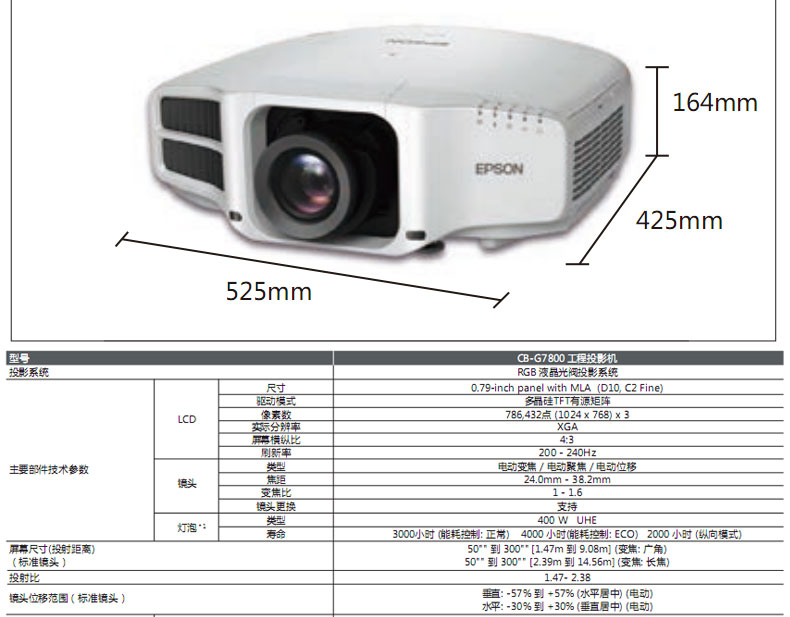 - 商品名称:爱普生(EPSON)CB-G7800 工程投影机
