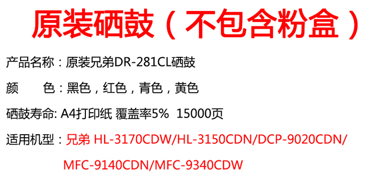 商品名称:兄弟DR281CL 硒鼓单元