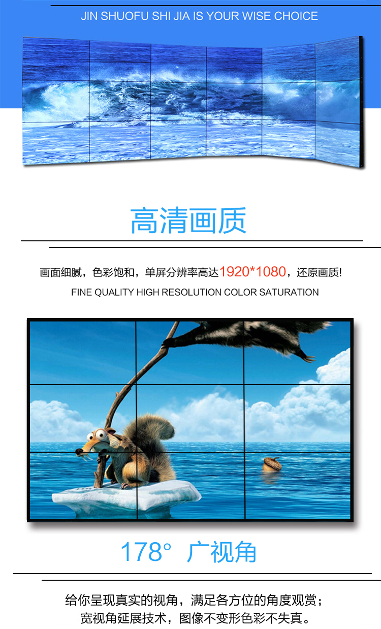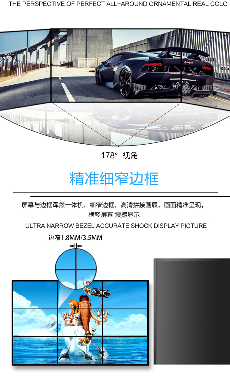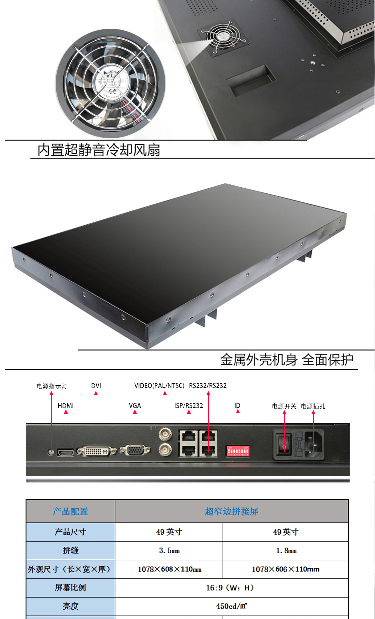 商品名称:YCTIMES 液晶拼接屏安防监控器材液晶拼接单元监控显示器商用工业显示屏拼接大屏幕幕墙 49英寸-3.5mm