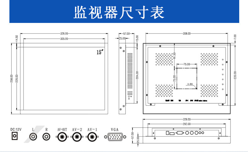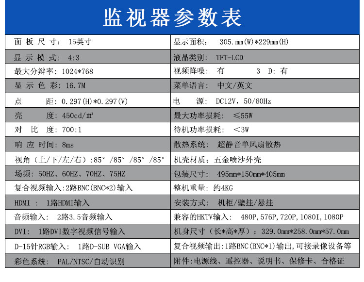 商品名称:吴派 15英寸液晶监视器 视频监控显示屏 工业级设备显示器