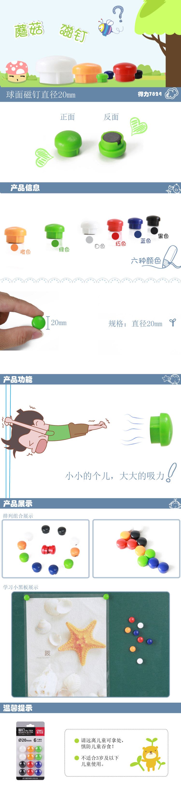 - 商品名称:得力 7824 磁钉 白板固定磁扣 磁铁 20mm 12个/卡