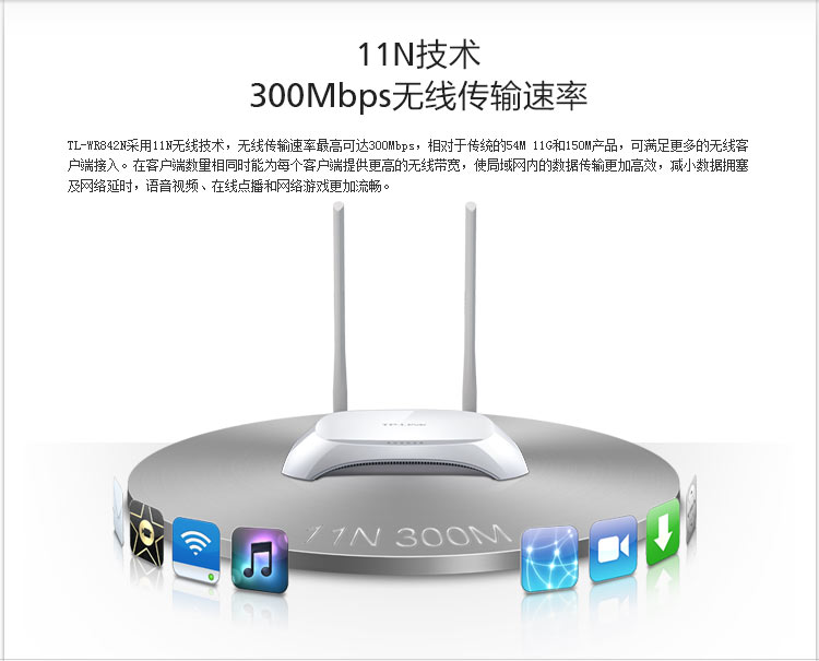 商品名称:TP-LINK TL-WR842N 无线路由器穿墙王 300M