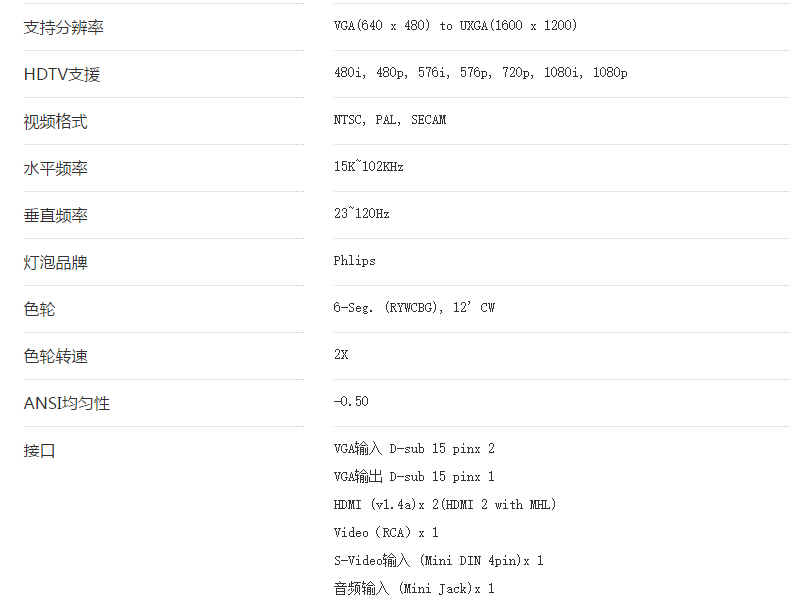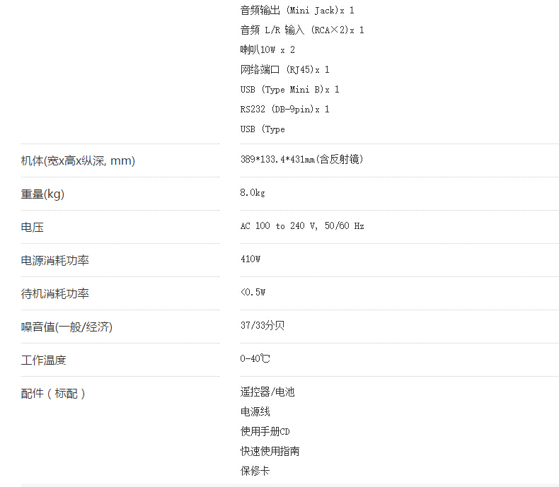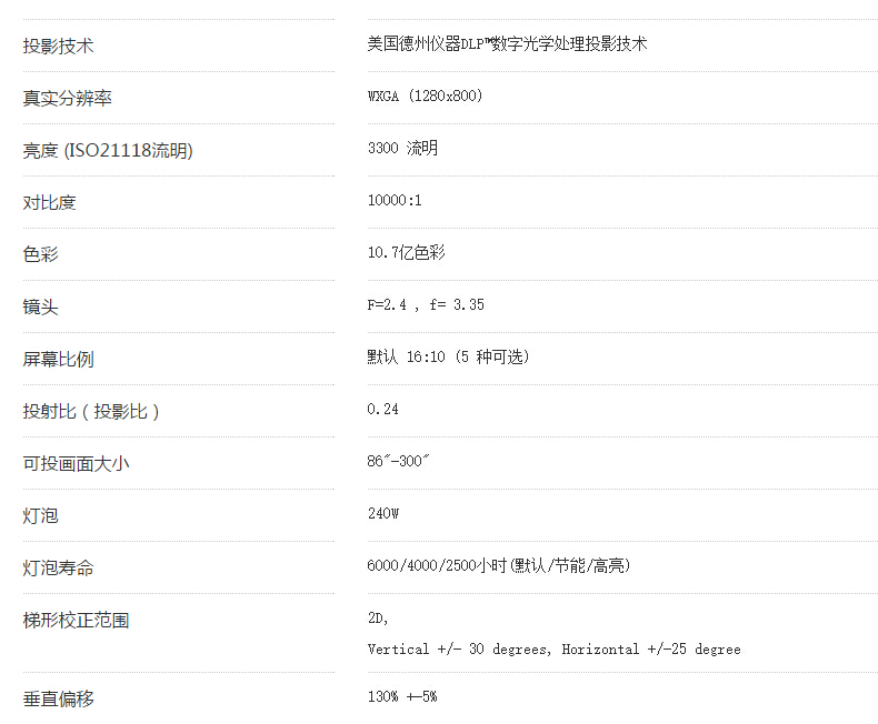 商品名称:明基 (BenQ) EX8498短焦高清商务办公投影机