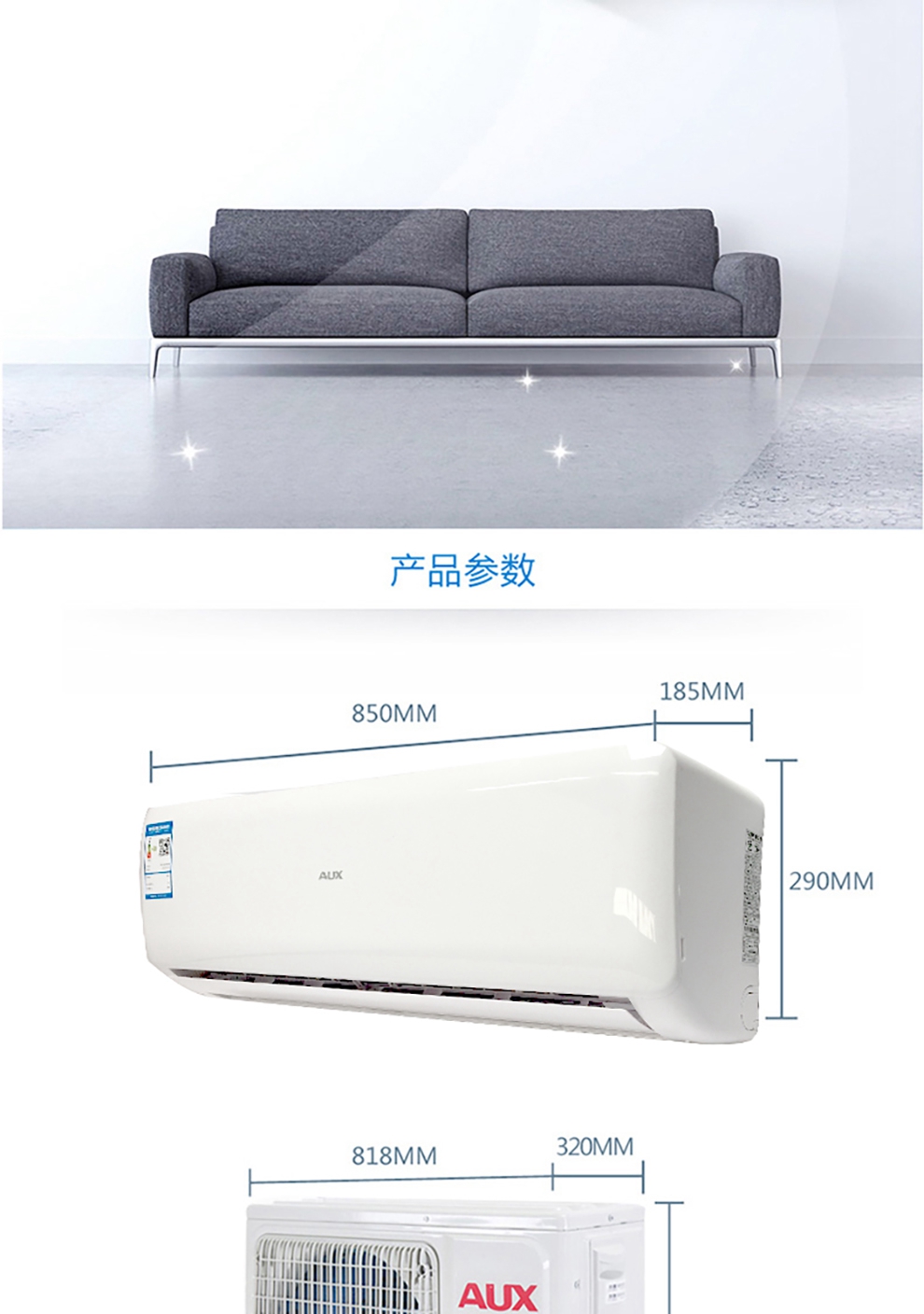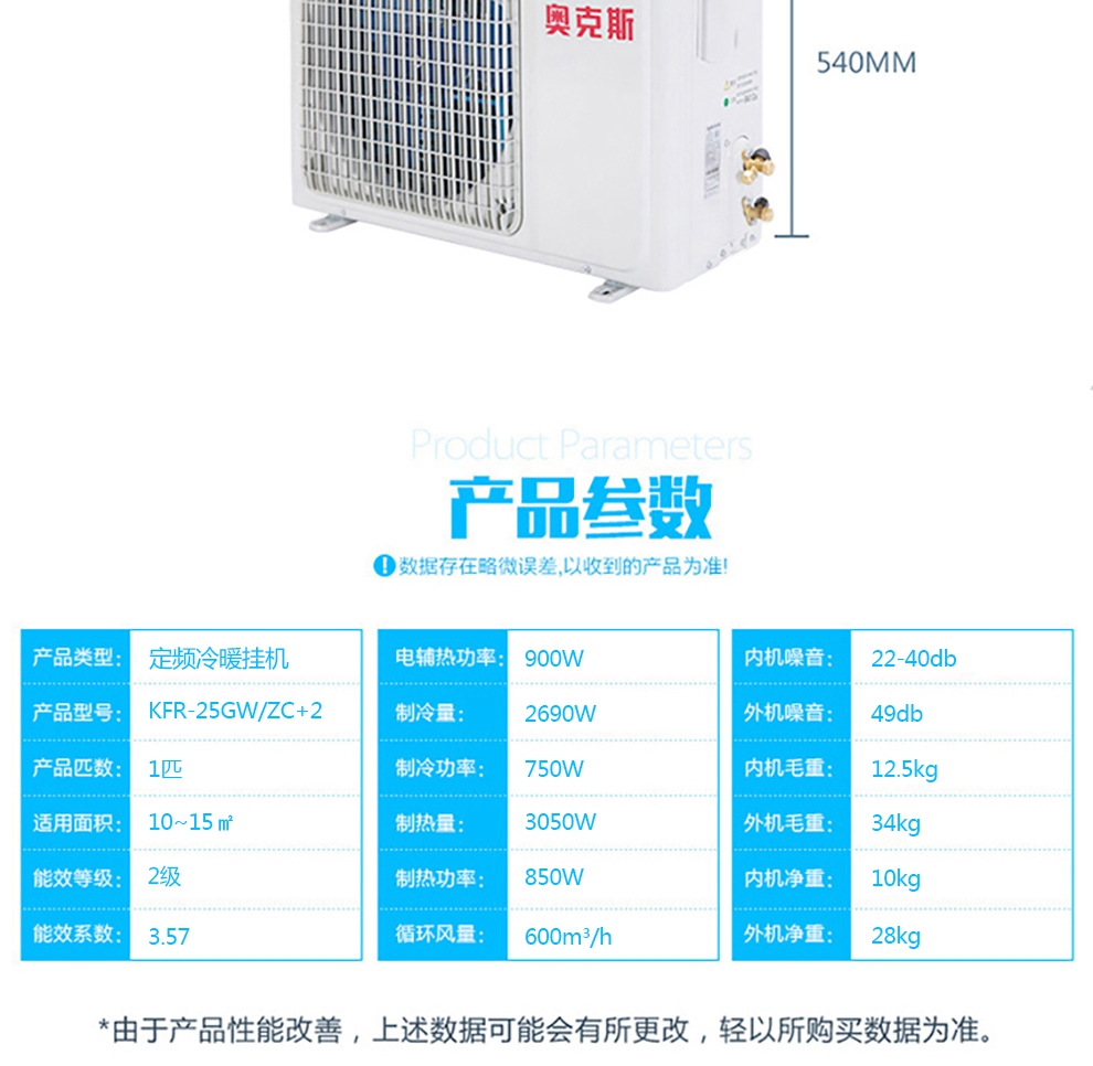 商品名称:奥克斯 KFR-25GW/ZC+2 正一匹冷暖壁挂式挂机 二级能效