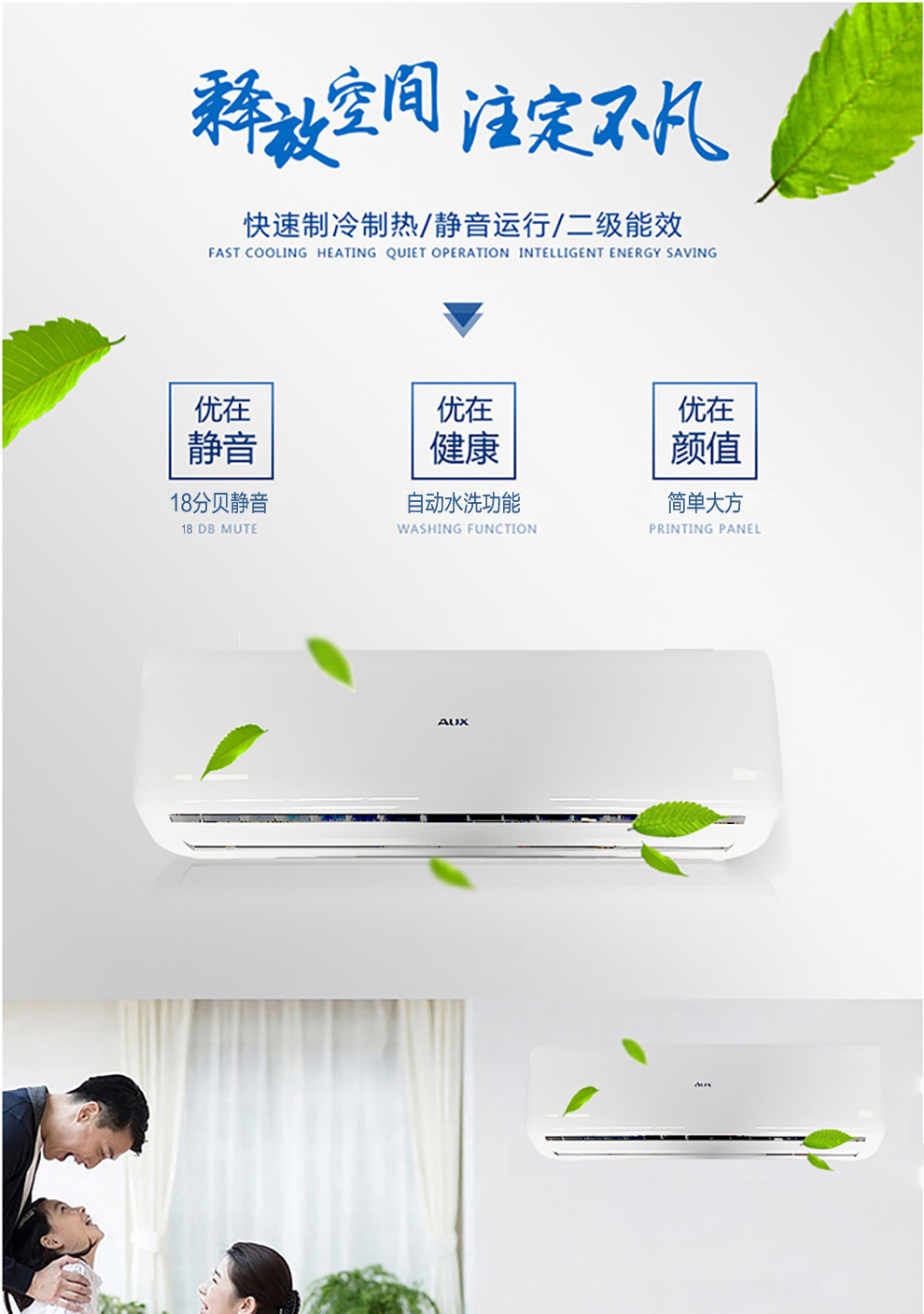 奥克斯 KFR-25GW/ZC+2 正一匹冷暖壁挂式挂机 二级能效