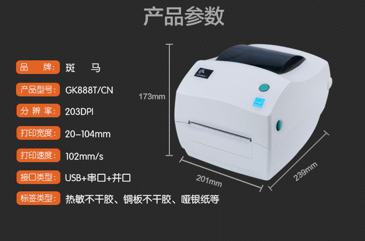 - 商品名称:斑马(ZEBRA) GK888cn 条码打印机