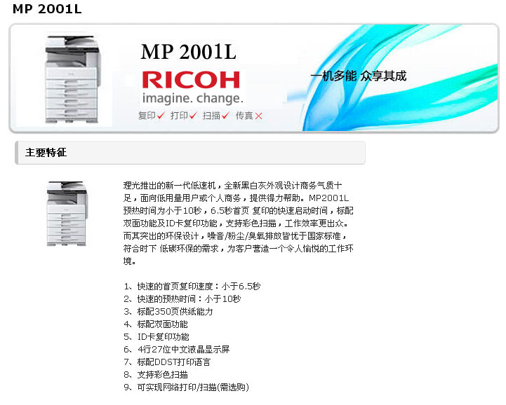 - 商品名称:理光 复印机 MP2001L简易配套