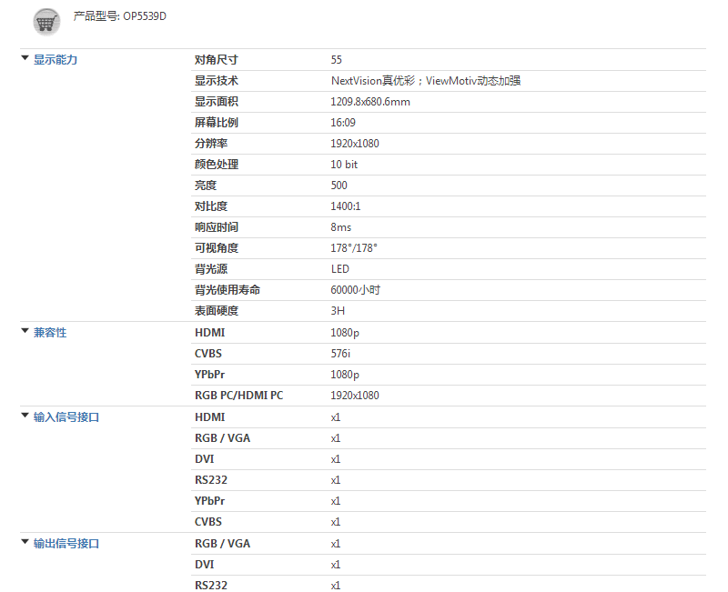 商品名称:优派 拼接显示单元 OP5539D 液晶屏 液晶显示器