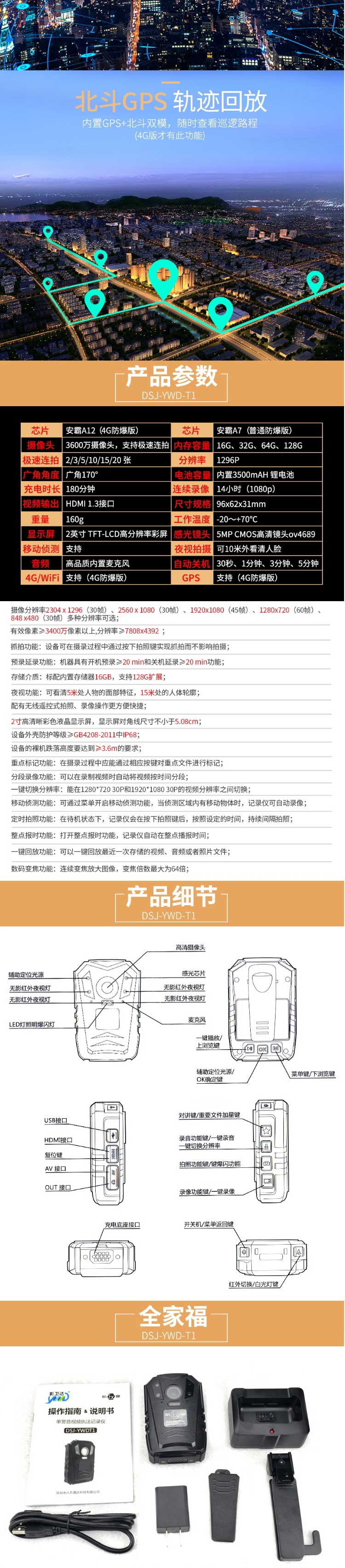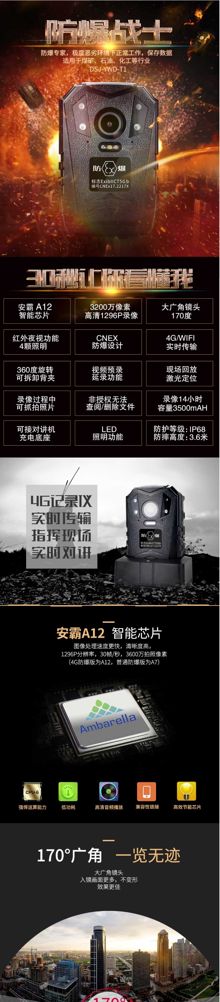商品名称:影卫达 DSJ-T1 1296P防爆4G执法记录仪 128G