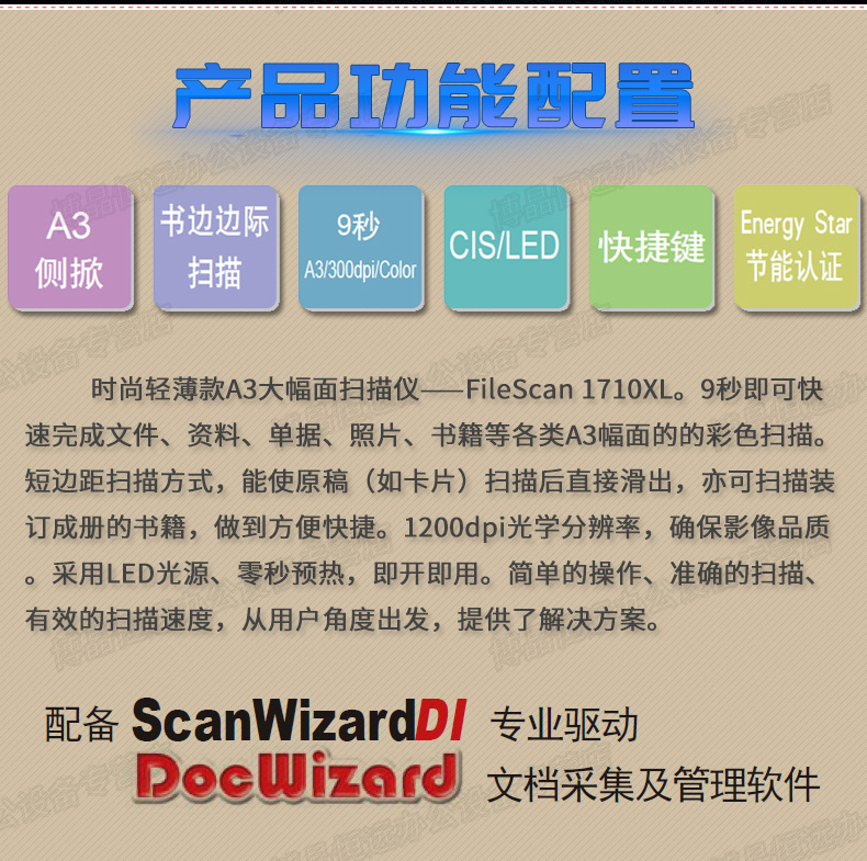 商品名称:中晶 Microtek 高速平板扫描仪 FileScan1710XL