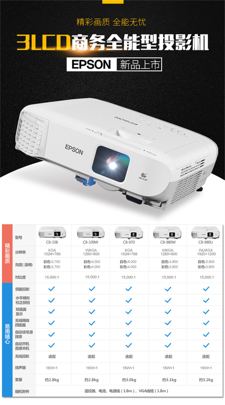 - 商品名称:爱普生 CB-108 高清投影仪(3700流明)