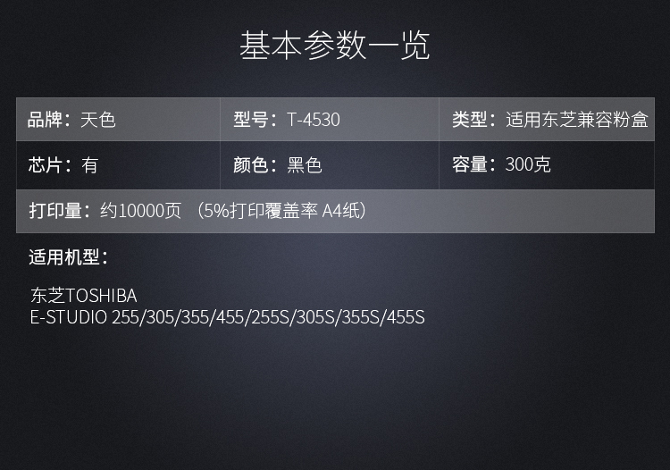 商品名称:东芝(TOSHIBA) 原装粉盒(T-4530C-10K低容)