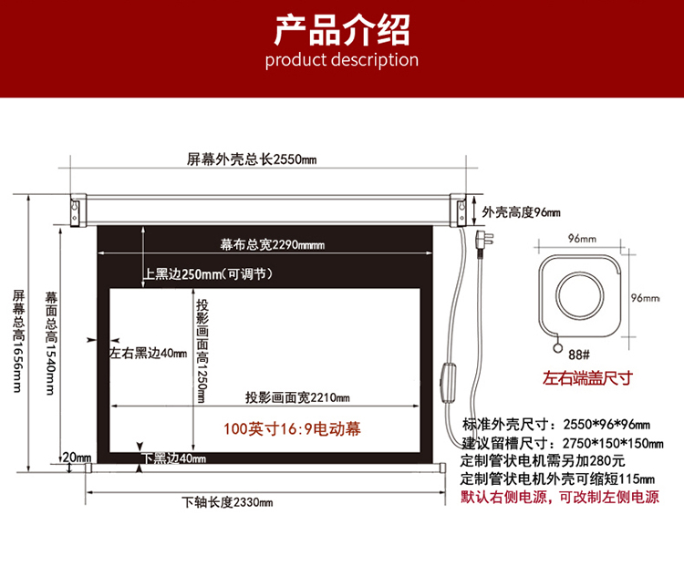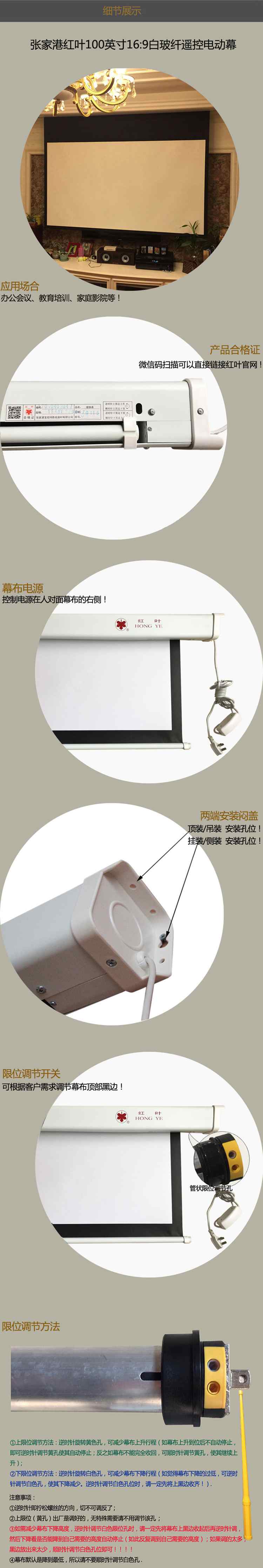 商品名称:红叶(Redleaf) 100英寸 16:9遥控电动投影幕布 (玻纤幕 白玻纤家用幕布)