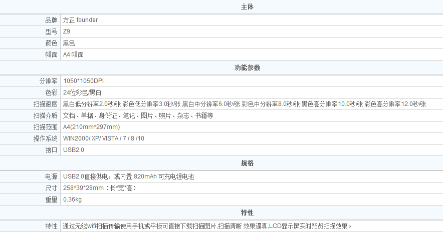 - 商品名称:方正 Z9 A4 彩色便携式手持扫描仪