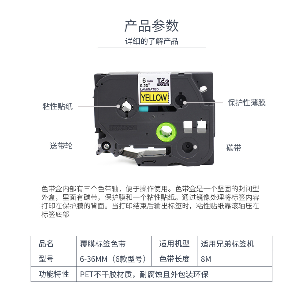商品名称:兄弟(brother) 原装彩色覆膜标签色带24MM(TZe-551蓝底黑字)