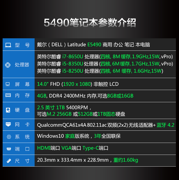 商品名称:戴尔(DELL) Latitude 5490 230150