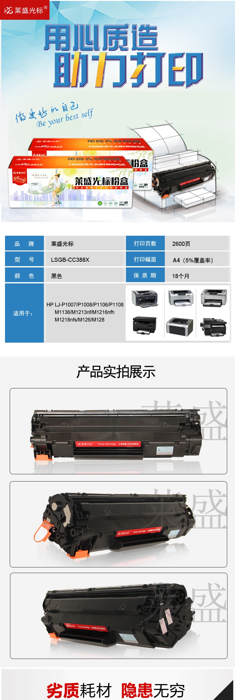 商品名称:莱盛(laser) 光标LSGB-CC388X大容量通用硒鼓