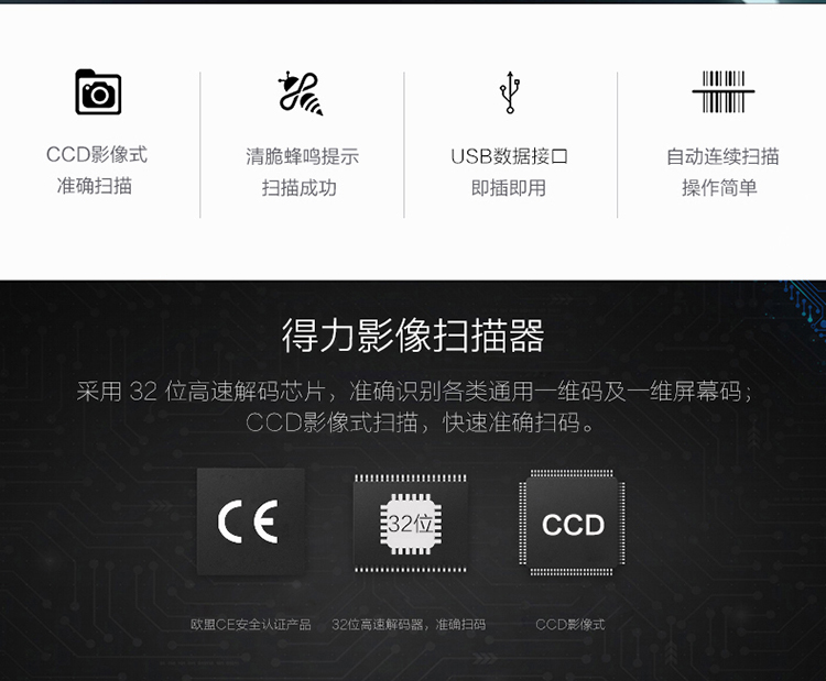 商品名称:得力(deli) 14882 有线扫码枪 黑色