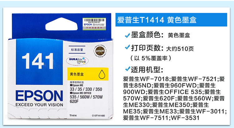 商品名称:爱普生(EPSON) T141 墨盒(T1413洋红色)