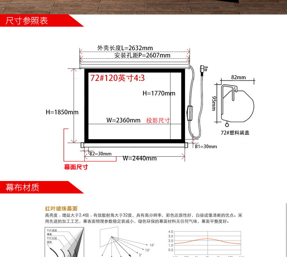 商品名称:红叶 120英寸4:3 电动幕布 白色