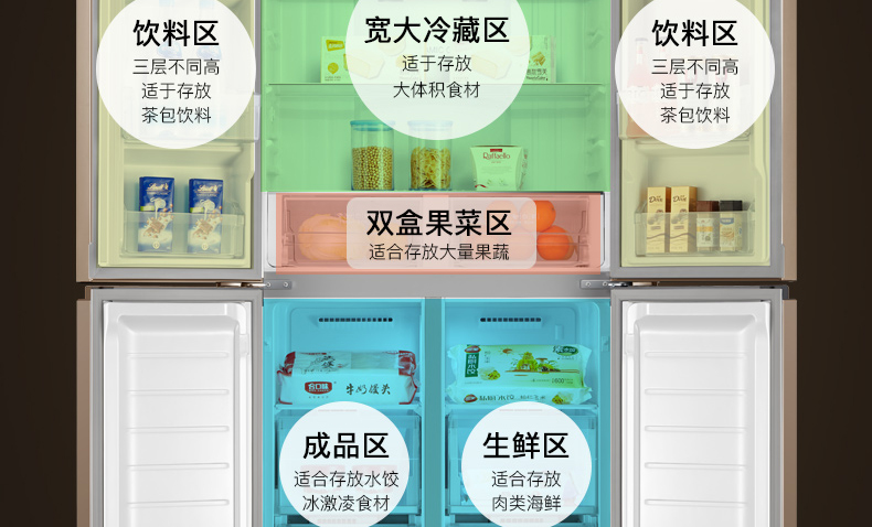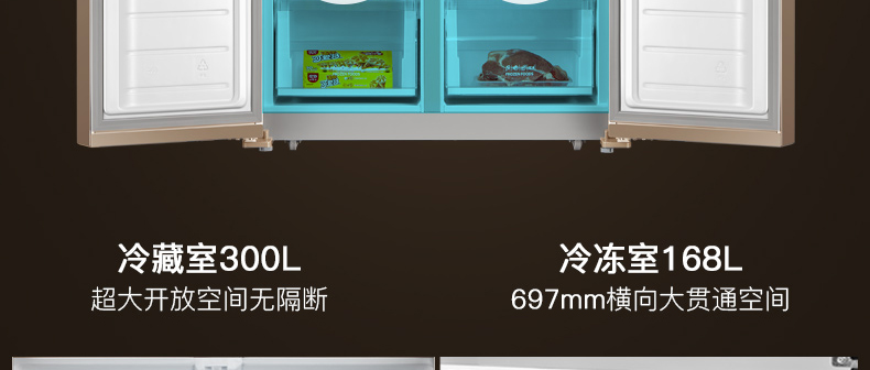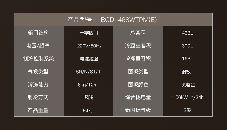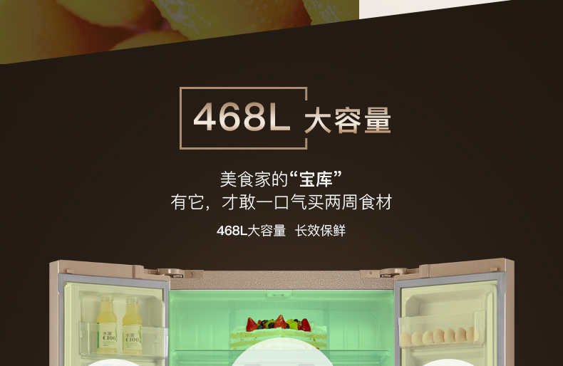商品名称:美的(Midea) BCD-468WTPM(E) 468升 十字对开多门冰箱 芙蓉金