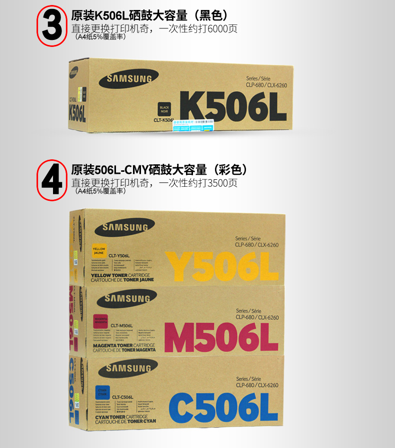 三星(SAMSUNG ) 原装大容量彩色硒鼓 (CLT-M506L 红色)