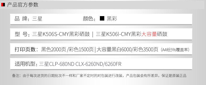 商品名称:三星(SAMSUNG ) 原装大容量彩色硒鼓 (CLT-M506L 红色)