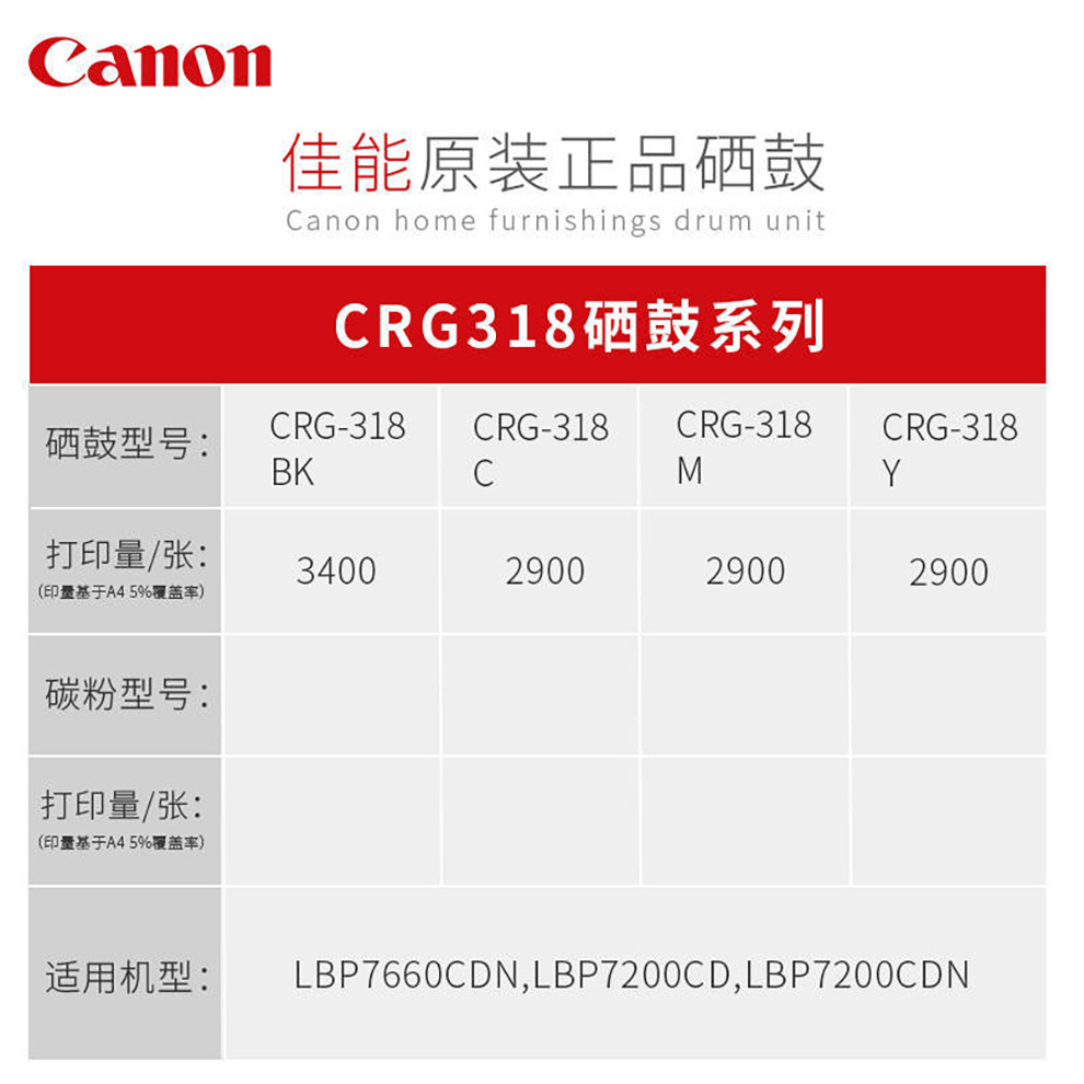 佳能(Canon)CRG-318 BK 黑色硒鼓(适用LBP7200cd/7200cdn/7660cdn)