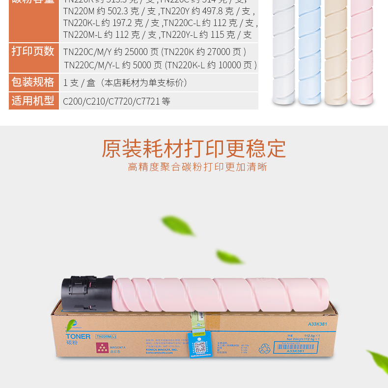 商品名称:柯尼卡美能达(KONICA MINOLTA) TN-220C-L 粉盒 (青色)
