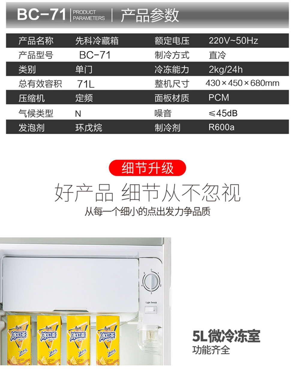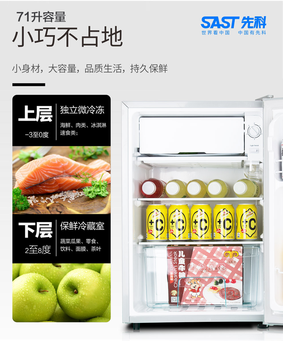 商品名称:先科 BC-71 迷你单门冰箱 71L
