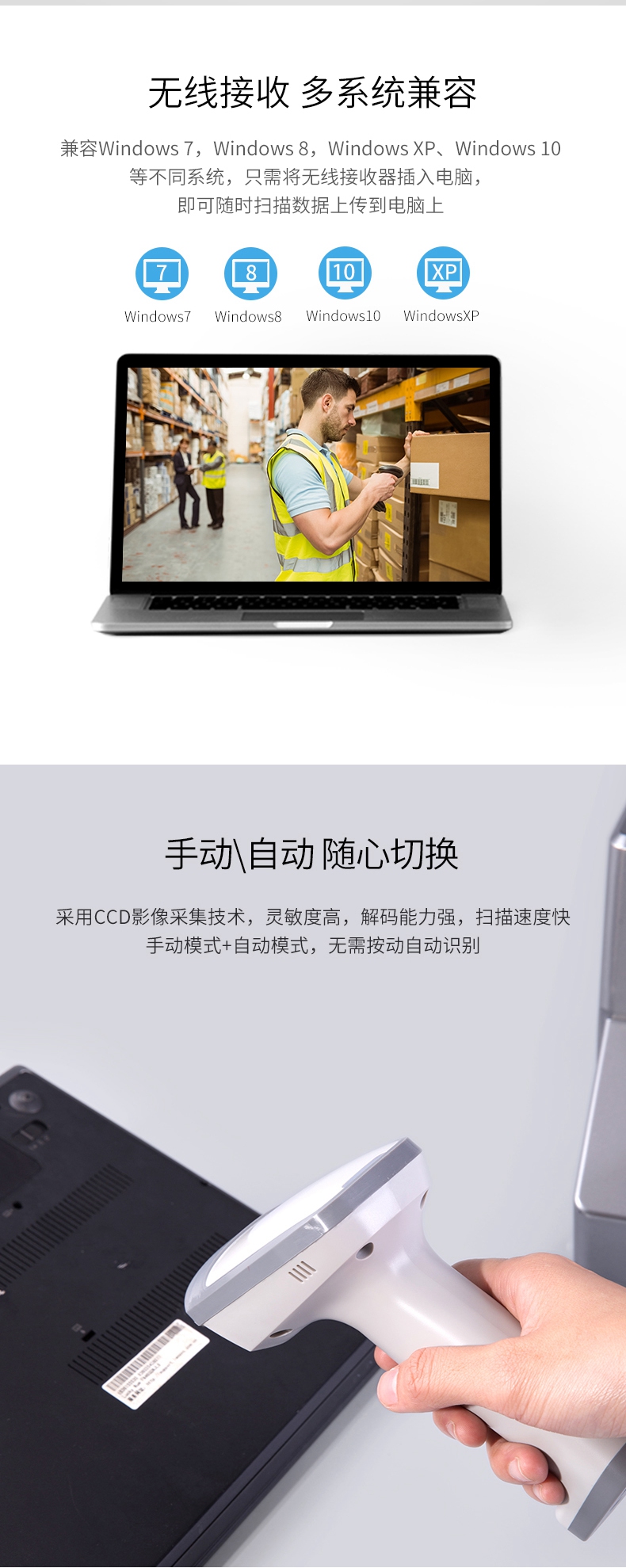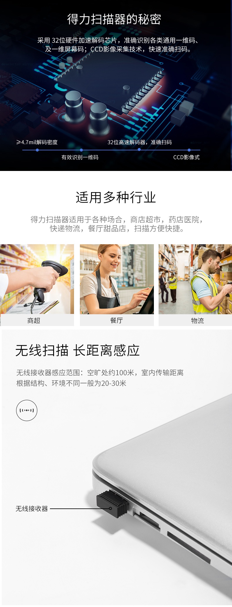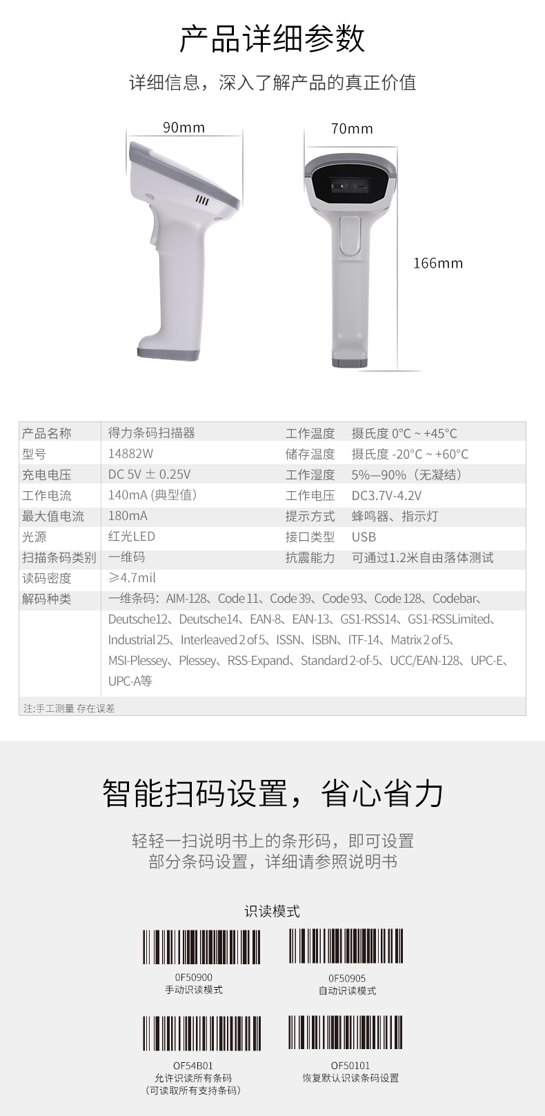 商品名称:得力(deli)无线扫描枪收银手机支付扫码枪 14882W白