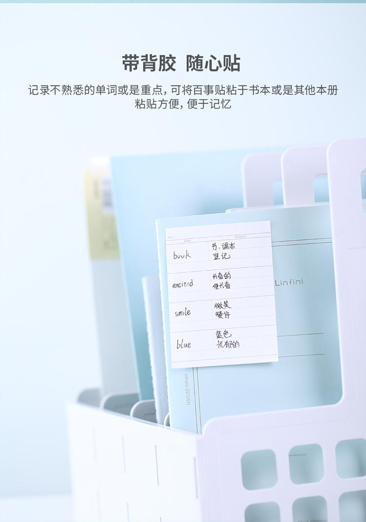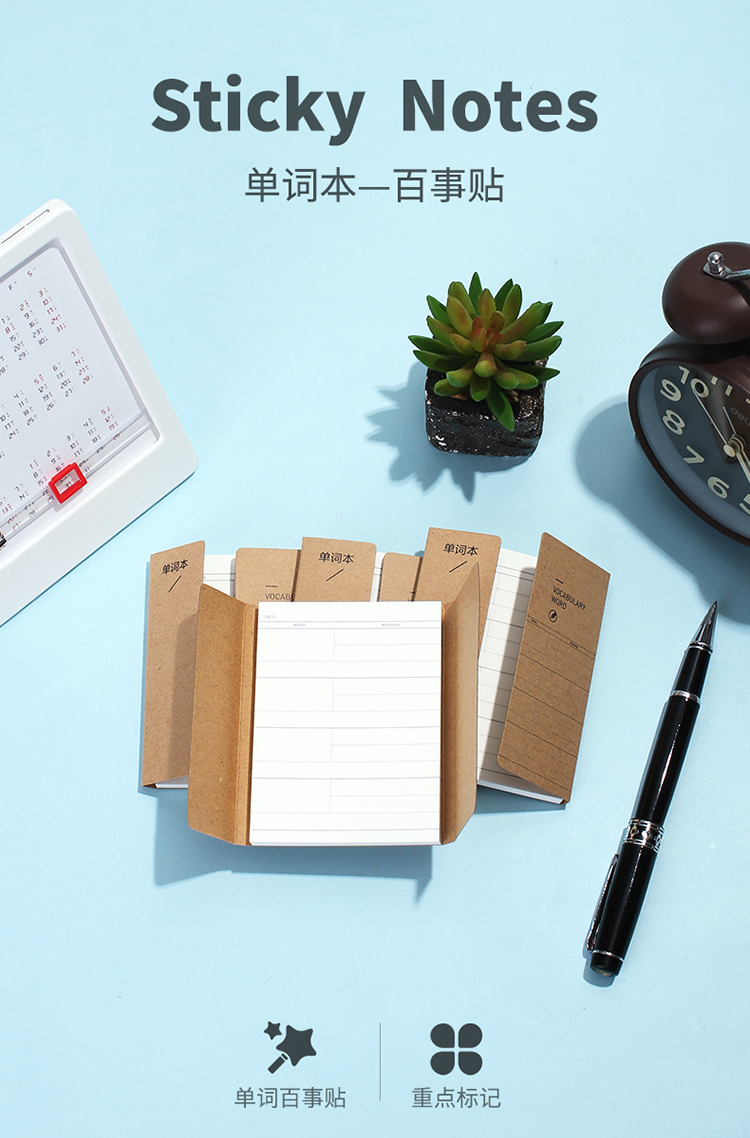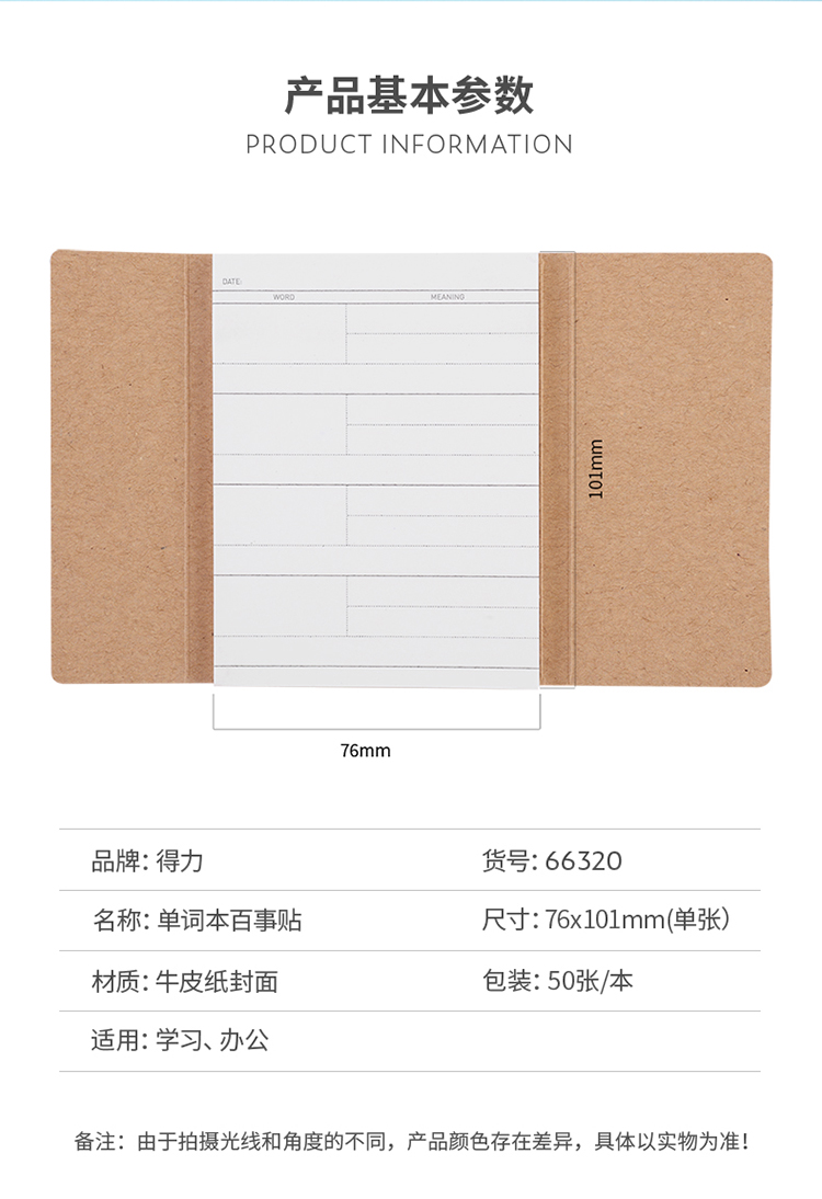 商品名称:得力(deli) 66320 牛皮纸单词本百事贴 (混色)