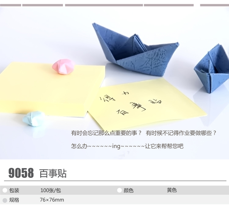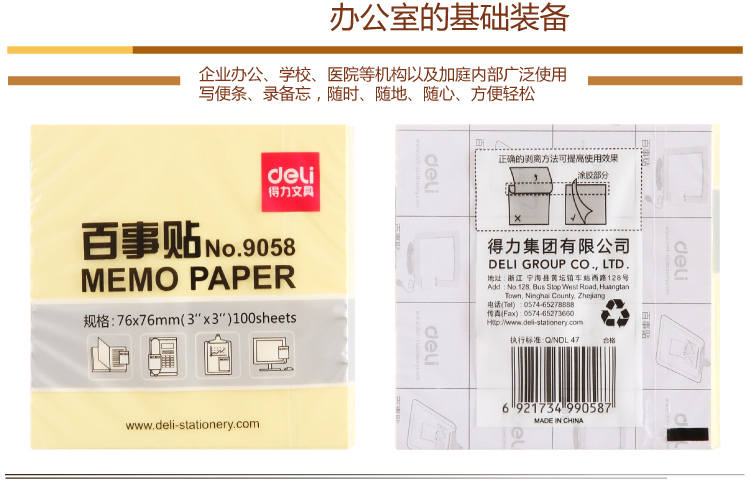 商品名称:得力 (deli) 9058 便签纸/便签本/便利贴 76×76mm (黄色)