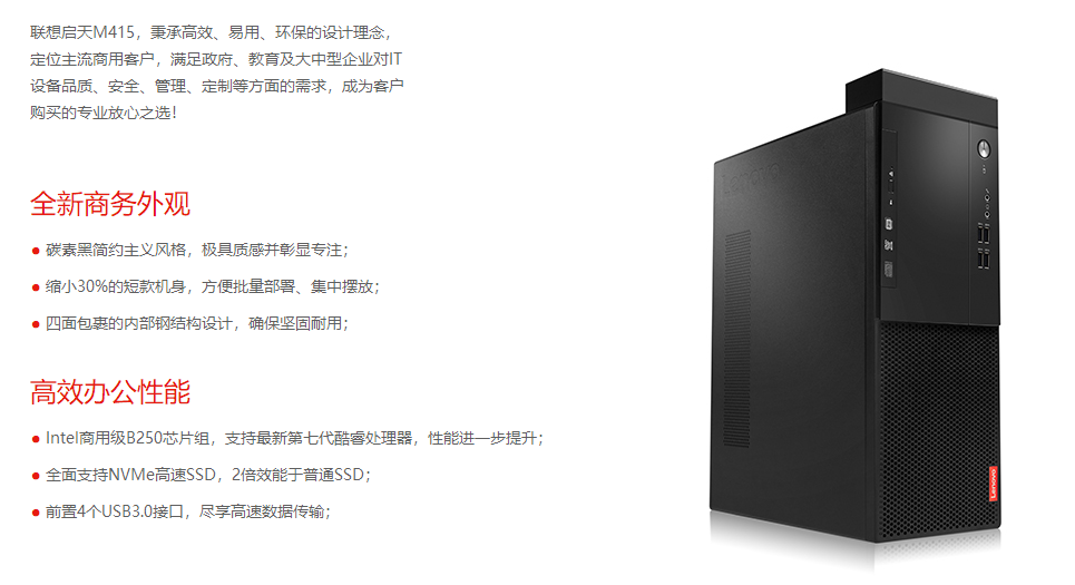 - 商品名称:联想(Lenovo) 启天M415-N000 台式电脑(I3-6100/4G/1T/无光驱/集显/WIN7/19.5英寸)
