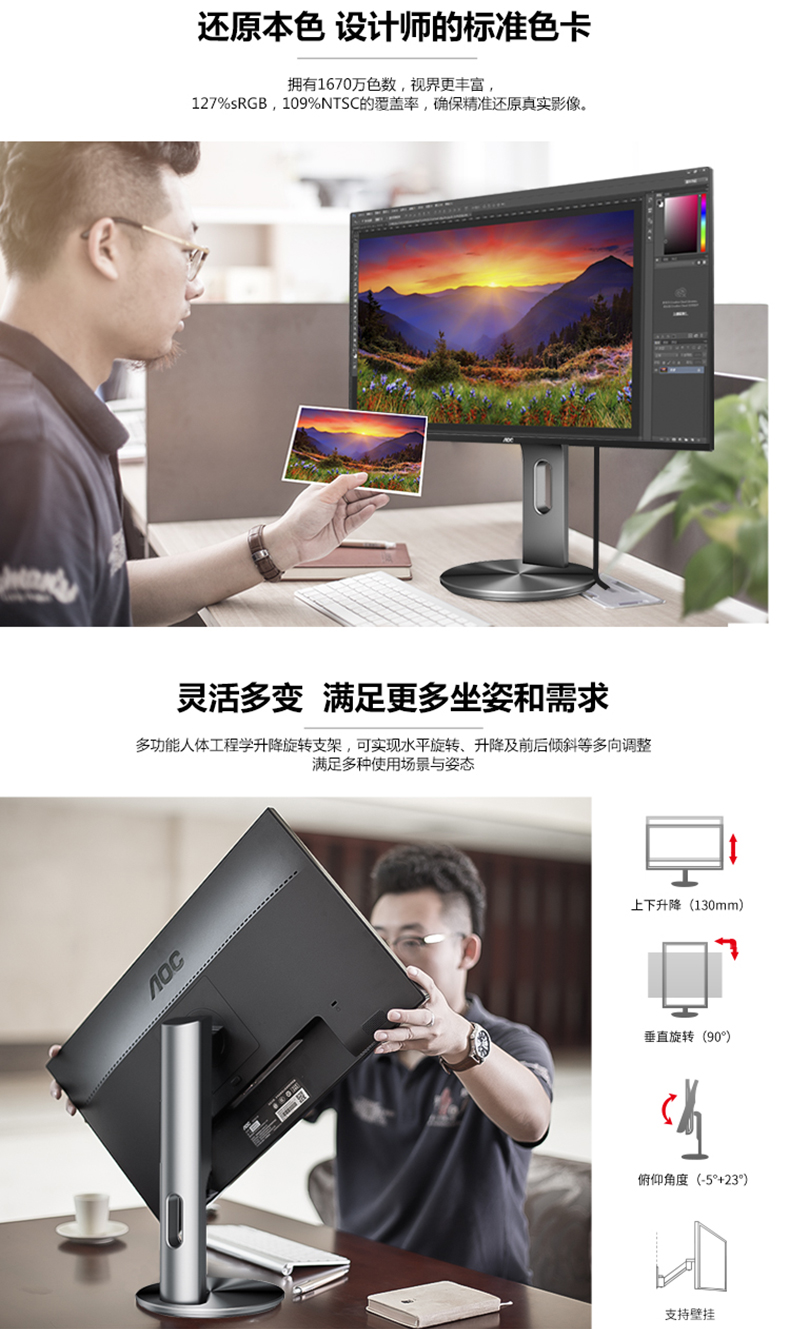 商品名称:AOC(冠捷) 23.8英寸 IPS 可升降旋转显示器