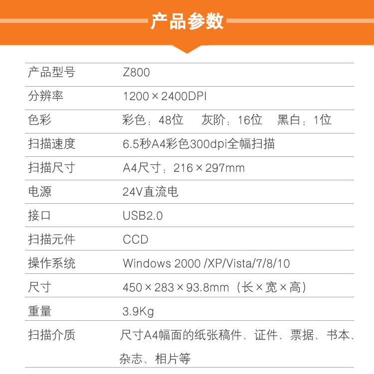 商品名称:方正(Founder) Z800书刊文件扫描仪A幅面零边距扫描仪