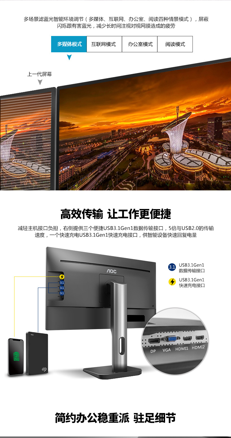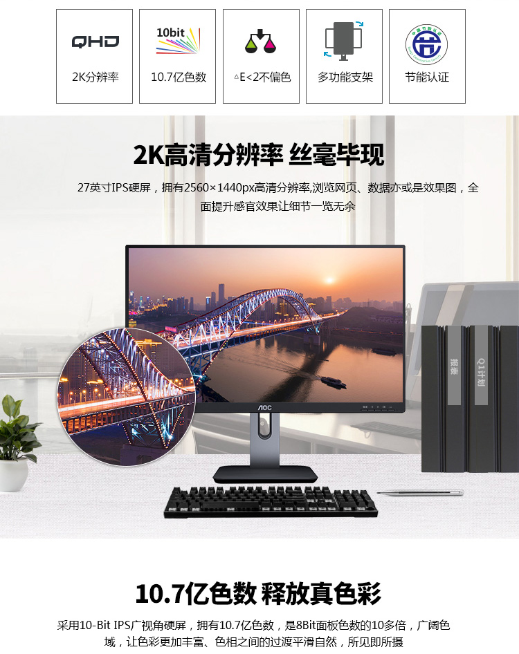 商品名称:AOC(冠捷) Q27P1U 27英寸IPS 2K显示器 黑色