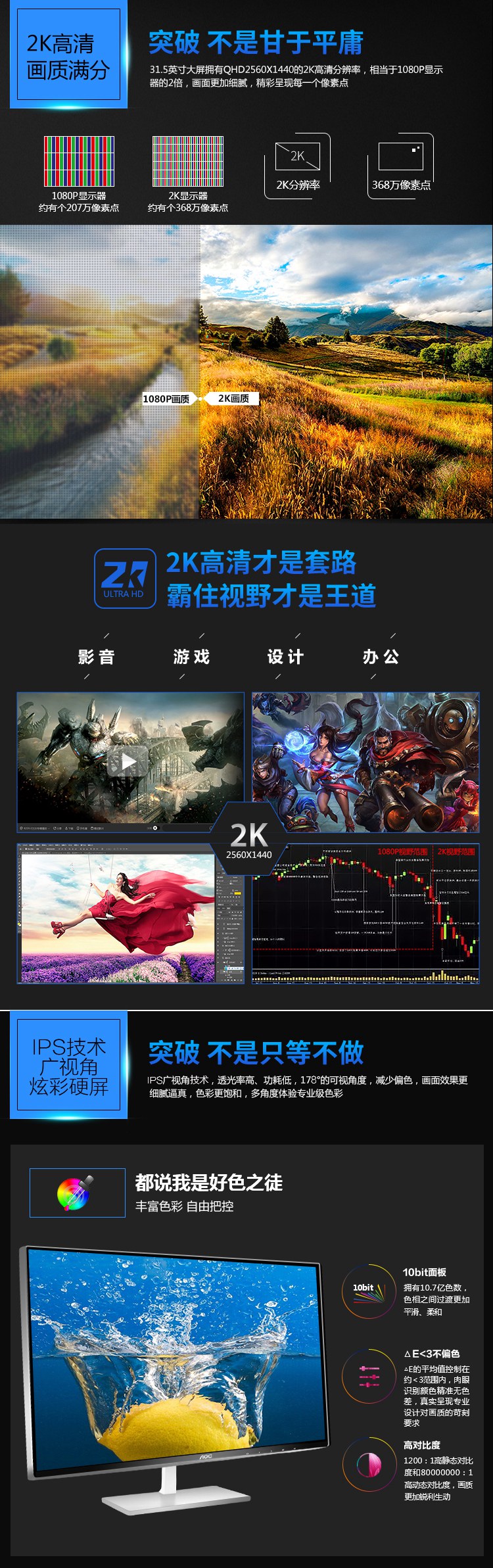 AOC(冠捷) 31.5英寸 2K高清 IPS技术广视角 电脑显示器