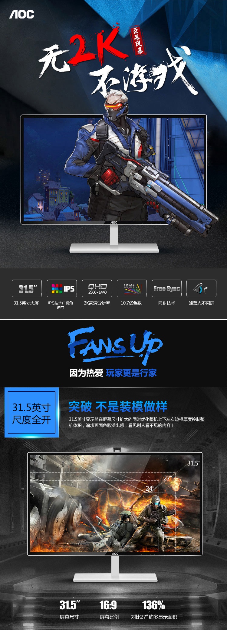 商品名称:AOC(冠捷) 31.5英寸 2K高清 IPS技术广视角 电脑显示器