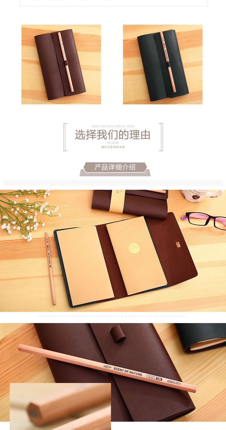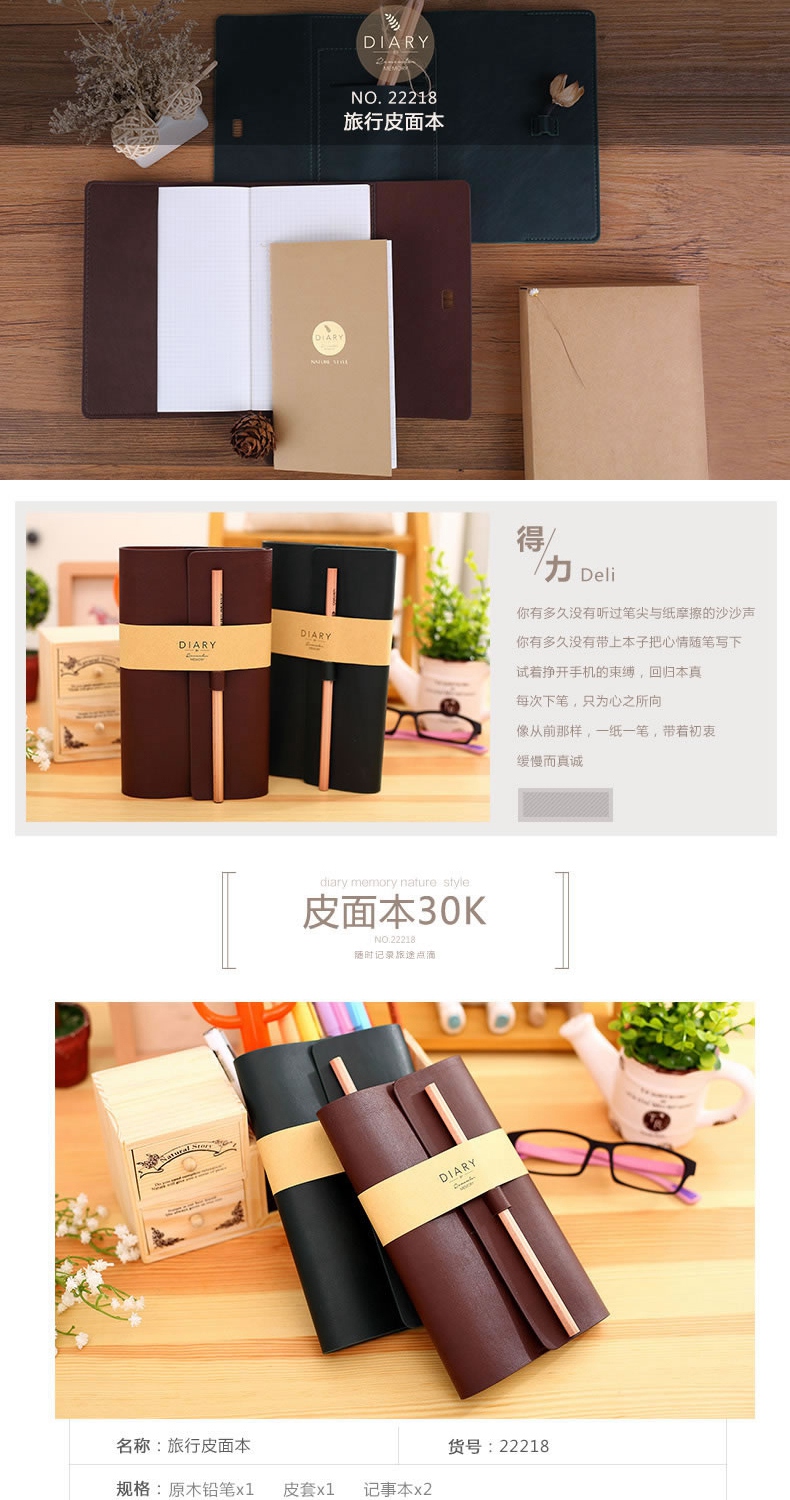 商品名称:得力 22218 旅行皮面本 创意记事本 商务笔记本 学生日记本子 绿色