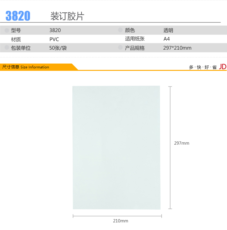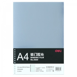 商品名称:得力(deli) 3820 透明装订封面/装订胶片A4 50张/袋
