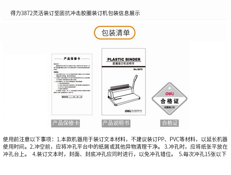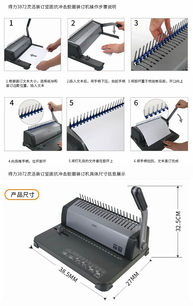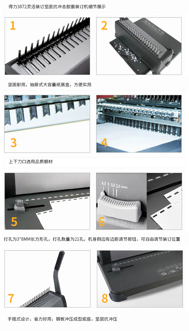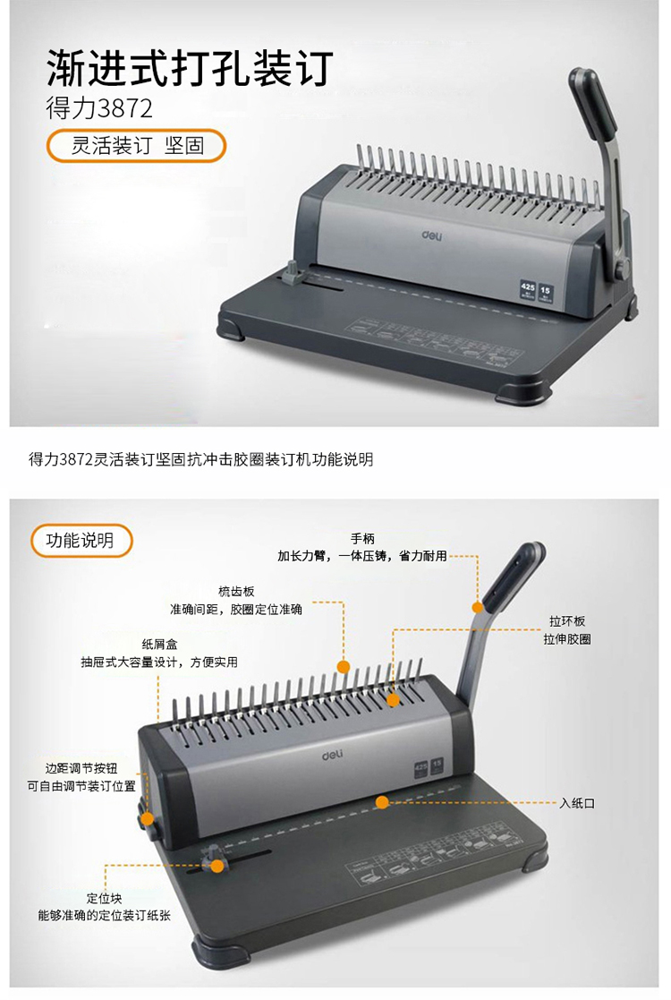 商品名称:得力(deli)3872 省力型21孔文件装订机打孔机 胶圈/夹条装订
