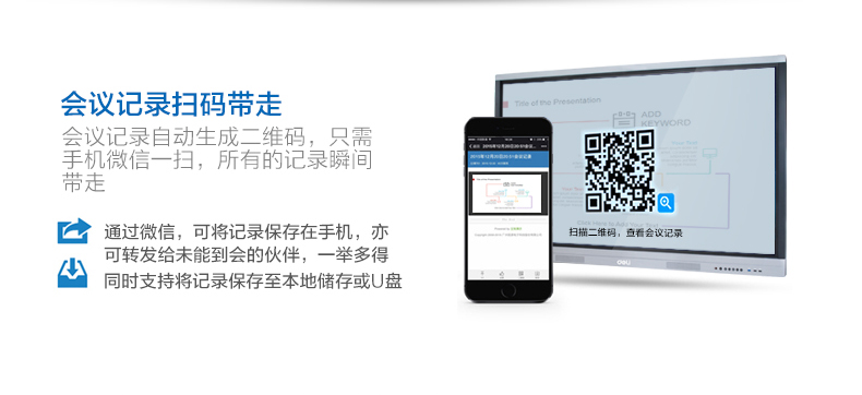 得力(deli)14781 智能交互白板电子白板平板 多功能会议平板
