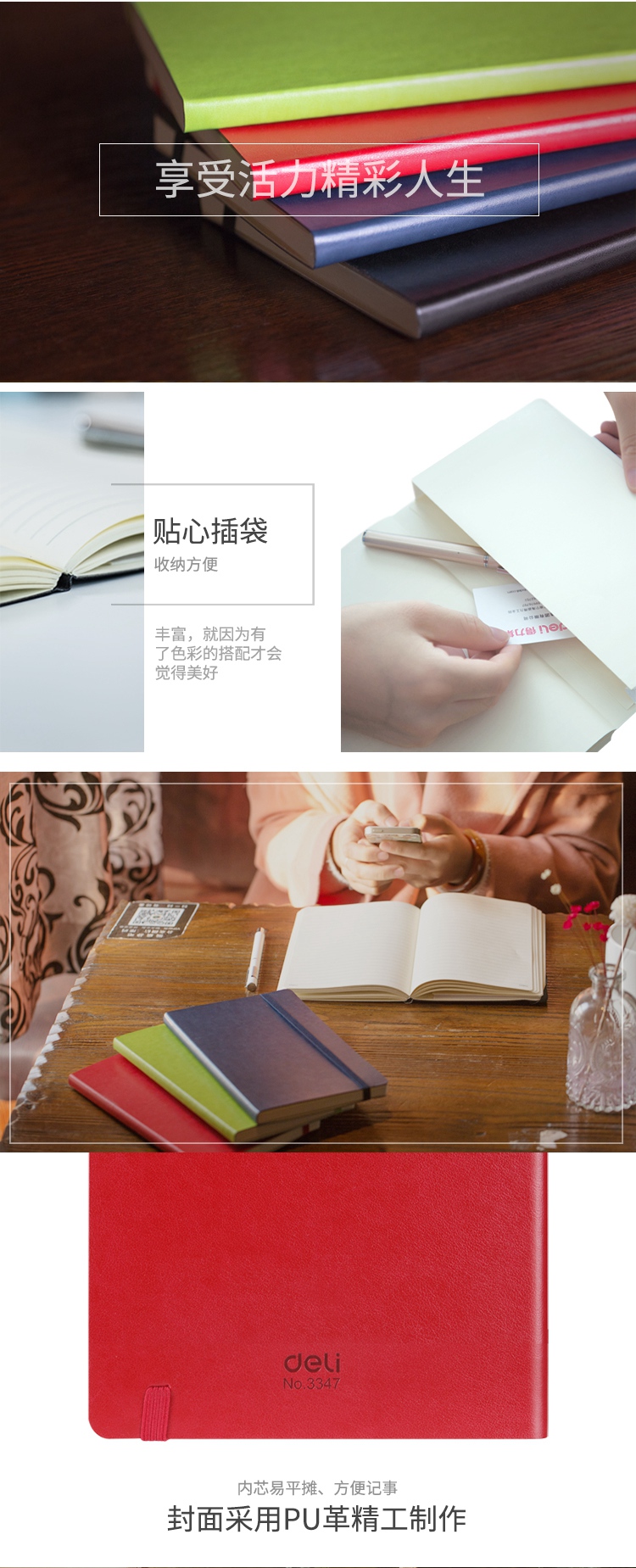 商品名称:得力(deli) 3347 25K/96页绑带皮面本 软抄本 记事本 蓝色