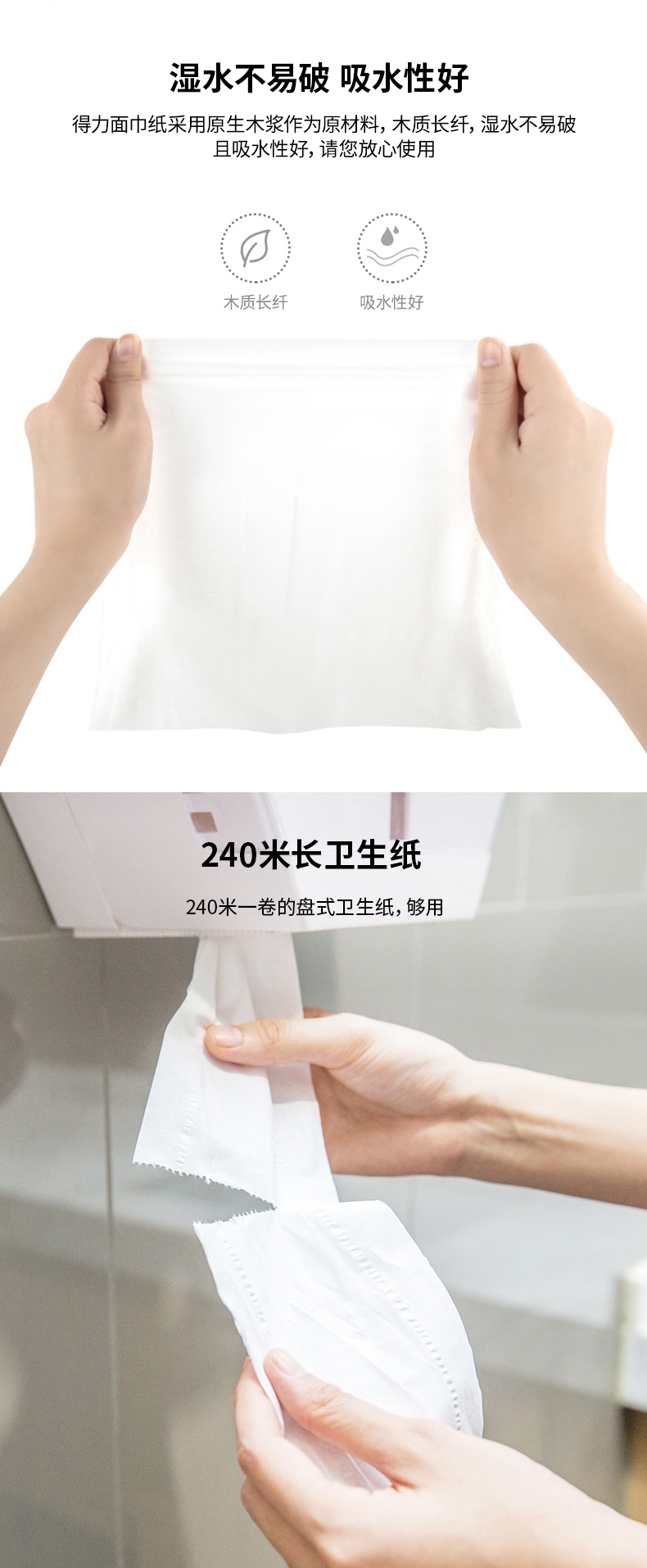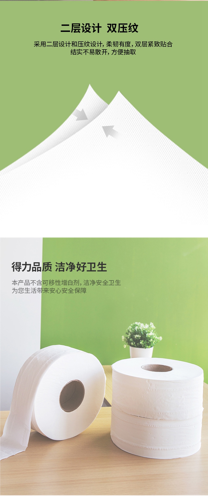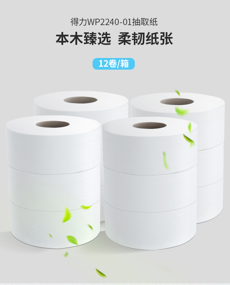 商品名称:得力(deli) WP2240-01 盘式卫生纸商务办公酒店卫生间家用大盘卷大卷纸 12卷/箱