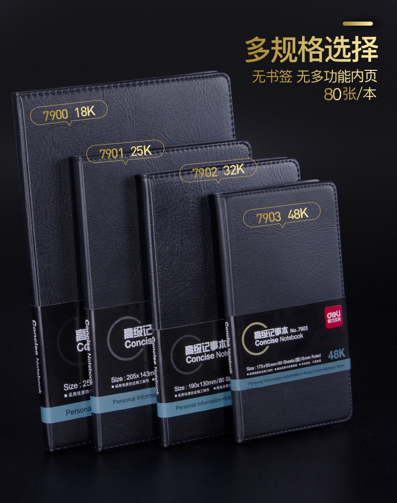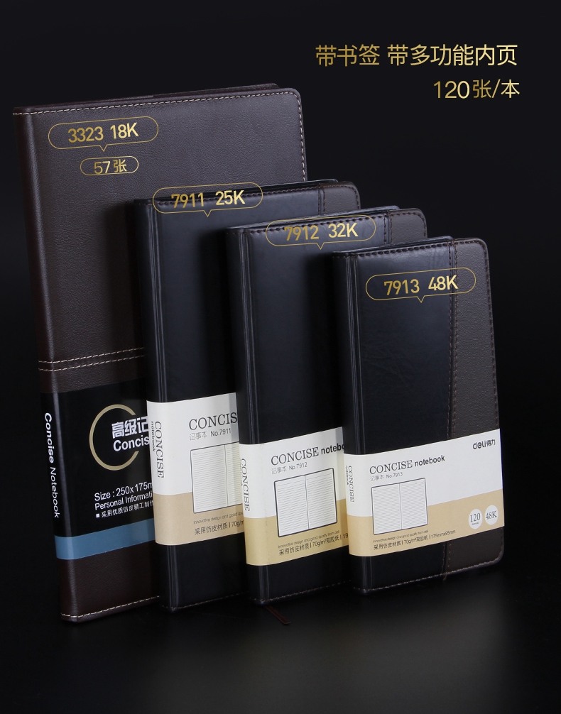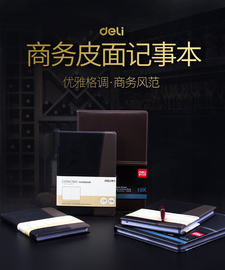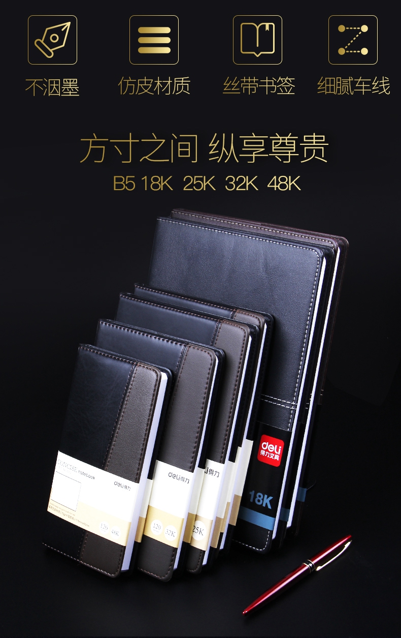 商品名称:得力 7913 商务活页记事本/皮面笔记本子/办公会议本子 48K/120张/ 黑