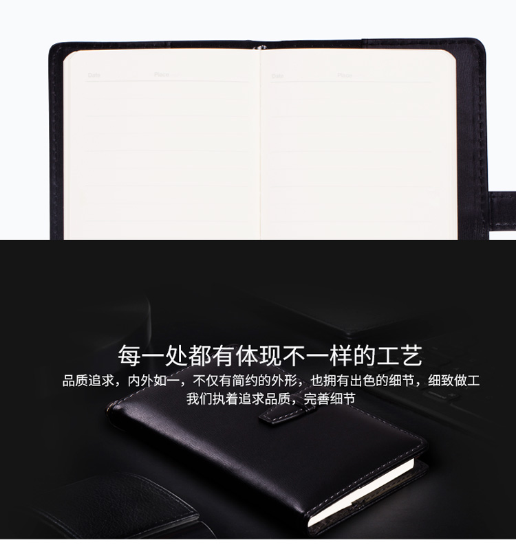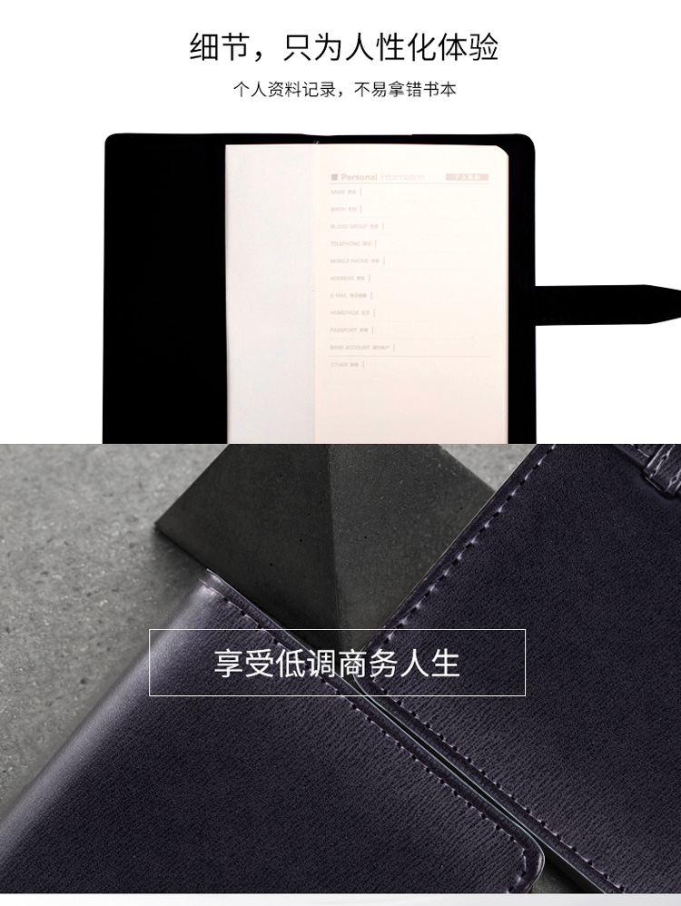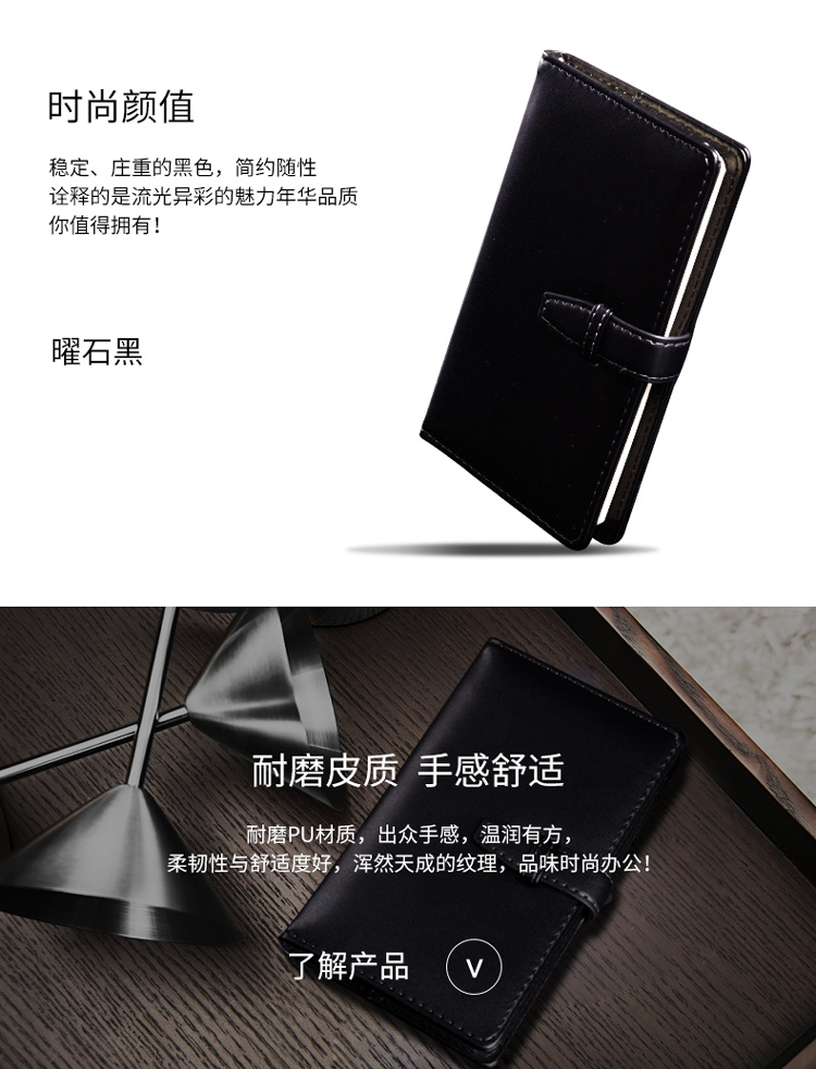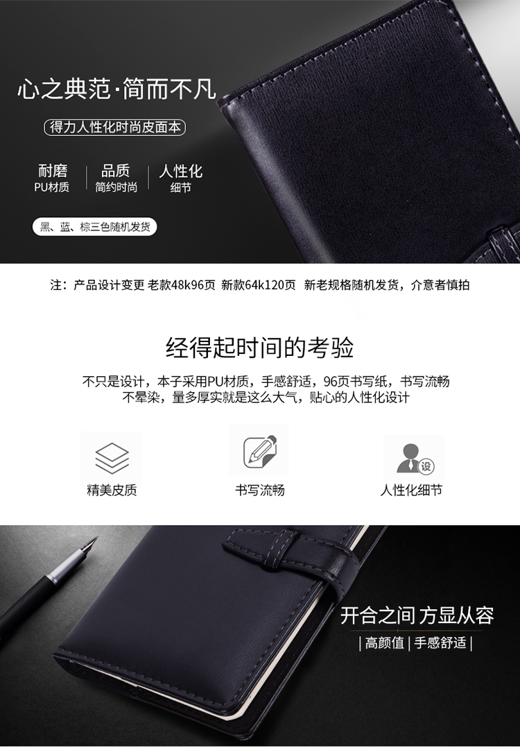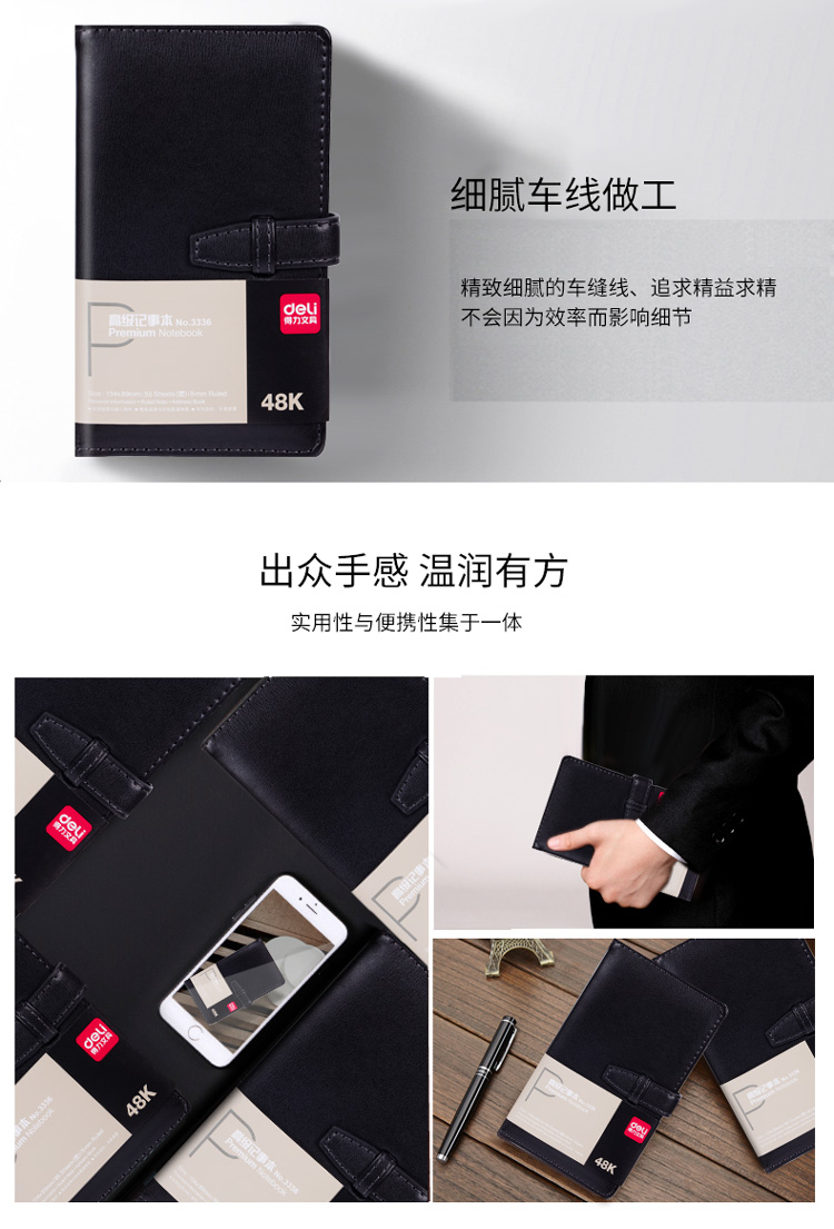 商品名称:得力(deli) 3336 64K/120页简约扣带皮面本 记事本 笔记本子 黑色